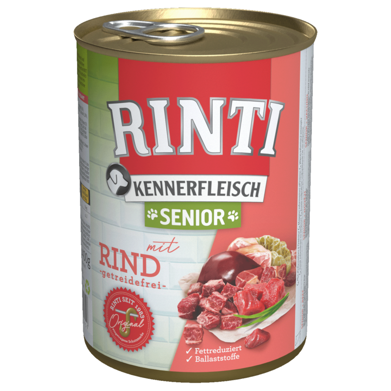 Für ältere Hunde ab dem 7. Lebensjahr (kleinere Rassen ab dem 8. bzw. 9. Jahr). Der ältere und nicht mehr so aktive Hund benötigt eine weniger nährstoffreiche Kost mit reduzierten Gehalten an Proteinen, Phosphor und Salz. Verringerte Energiegehalte und zusätzliche Ballaststoffe beugen erhöhtem Körpergewicht vor. Bei Übergewicht sollte der Tagesbedarf nicht auf mehrere Mahlzeiten verteilt werden. Gewicht des Hundes